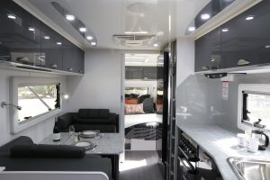 David and Shelley aren’t strangers to Crusader Caravans brand, they have one of their own, but the Excalibur SCV is something else.  Shelley loves the attention to detail like the push button step at the front door and the remote-controlled lighting.  While David’s experience is more about the practical operation of the van, the towing ability, the suspension and how the vans handle the road.