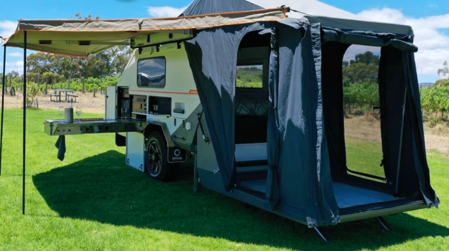 Make no mistake ladies and gents, the Domino from Offline Campers is a relatively newcomer to the camper trailer scene that by all intents and purposes promises big things! It’s already taken out several awards from the Camper Trailer of the Year competition, and proven it has no qualms in breaking the tradition mould and re-inventing the wheel to deliver a design that ticks more boxes than most. So, we thought we’d take a closer look at what makes it tick.