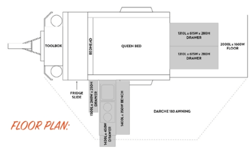 Weighing in at an impressive 1200kg, this is a camper trailer that can really go places without giving your tow-tug a hard time. It’s 1800mm width means it isn’t bulky out on those tight stretches of track, and a draw bar extension of 600mm as standard goes a long way to ensuring it’s well-minored to tow and reverse.
