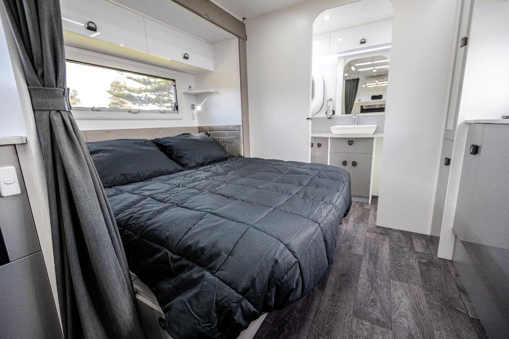 What makes this 19ft master bedroom/ensuite configuration possible is the bedroom slide out–one that’s so well integrated, you almost forget it’s there.