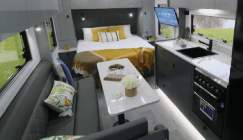 Other tech comforts include RV WiFI and an able battery management system for the 12V and 240V power systems that include individual fuses and double power-points internally.