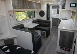She rides on a very solid base with its 100% Australian G & S Chassis with 4inch main chassis, 4 inch riser and 6inch drawbar, a 3.5 tonne ALKO Enduro Outback dual shock independent suspension with the added confidence of 12 inch brakes and 16” all-terrain tyres on attractive mag wheels. Al-Ko ESC (Electronic Stability Control) has set new safety standards for safe towing and of course there’s an electrical breakaway system.