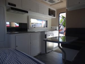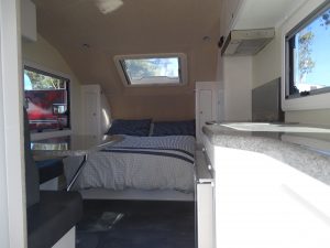 The Karakampa II is a beautiful caravan to look at, elegant in design, and has the knack of making the interior look far bigger than it actually is. The van is white, inside and out and is an all composite design and uses the monocoque system which means that individual parts combine to make the overall strength of the unit. It works and works really well.