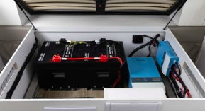 Outdoor living starts with the electric awning. Forward, both e-rv caravans feature a tunnel boot. You can option a lockable checker-plate toolbox with a slide-out, room for firewood, jerry holders or optional gas rings for a barbie. The door is car-like bolstering campsite security. And there are two speakers and a drop-down table for happy hour nibbles. Given the Suit of Armour series is off-road, all electric 4×4 camper and 4×4 caravan models come with a DO35 hitch and independent coil-sprung suspension.