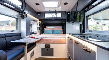 A capable off-grid spec complements these track friendly features. That includes 240L in freshwater storage and 80L for grey, a firebox and a power system comprising the REDARC Manager30, 240Ah of lithium storage, 2000W pure sine inverter and 400W of solar.