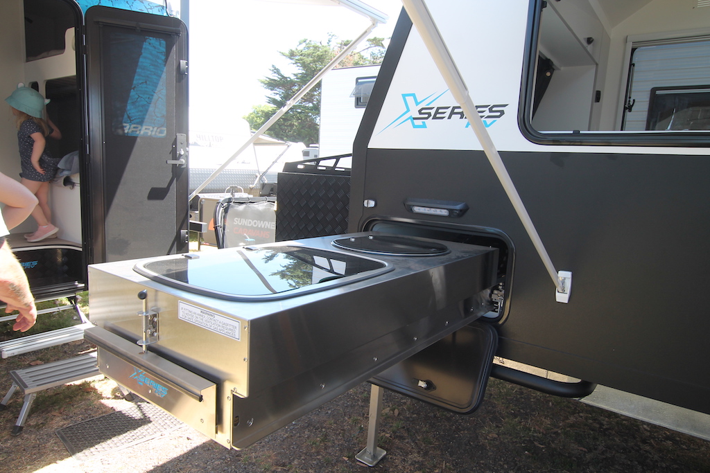 Geared for campers, families can chill for hours on end under the awning, with the pull out kitchen close at hand and a tray above the toolbox for carting firewood into camp.