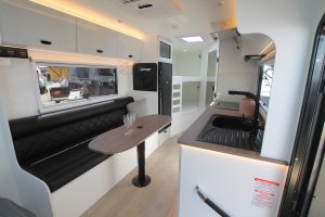 Wireless charging points cuts down help keep the interiors clean by cutting down on cords. While a spacious dining area converts to another berth.