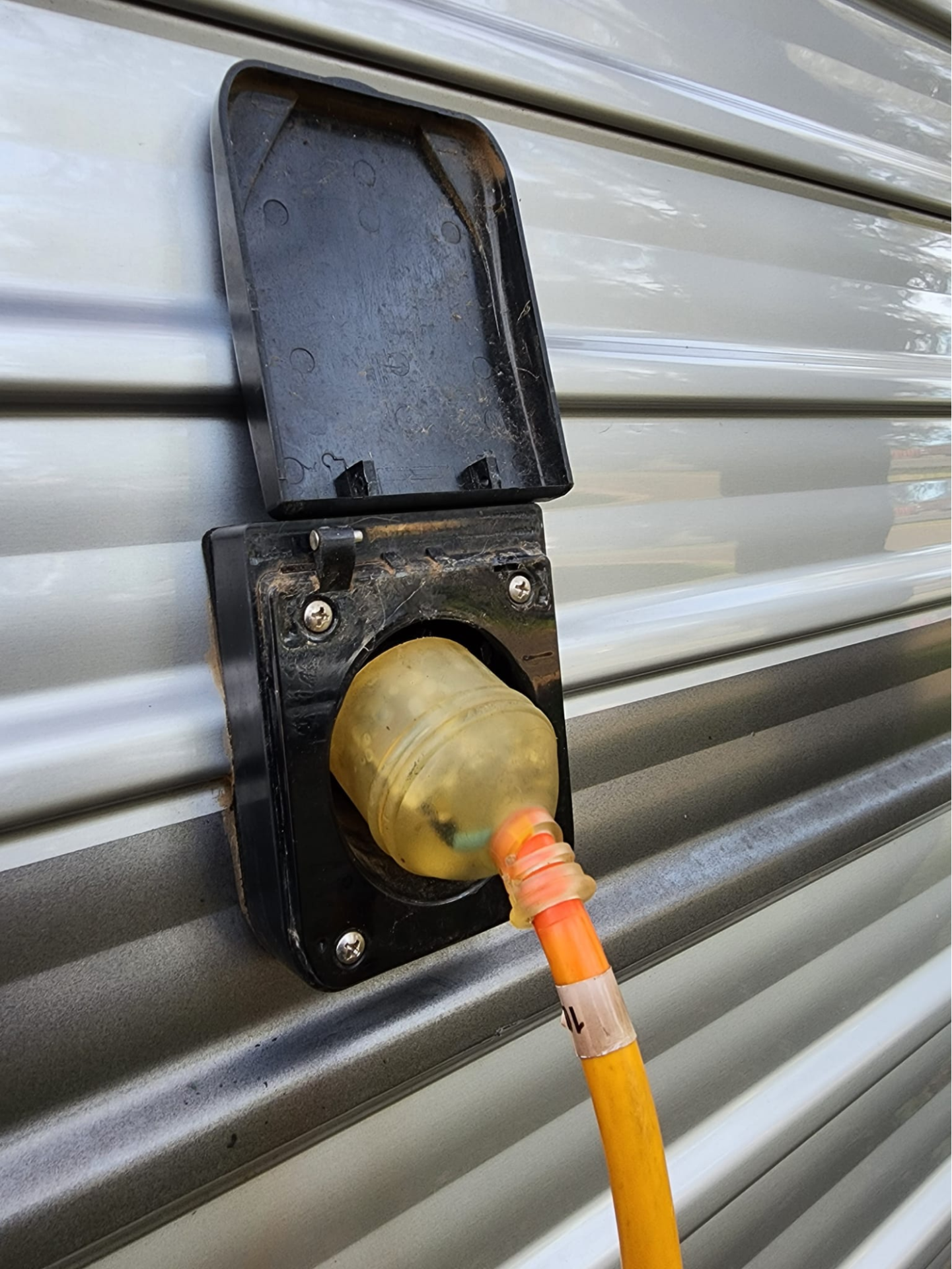 Tony posted: One of the pins that holds the cover to my 15-amp inlet has broken off. Does anyone know if you can just replace the bit with 4 screws and where can I get parts?