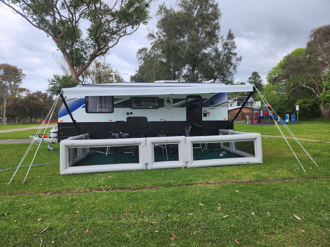 Kristine posted: “Base camp set up at Werri Beach caravan park. Love our inflatable dog fence. Buffy was impressed too.”