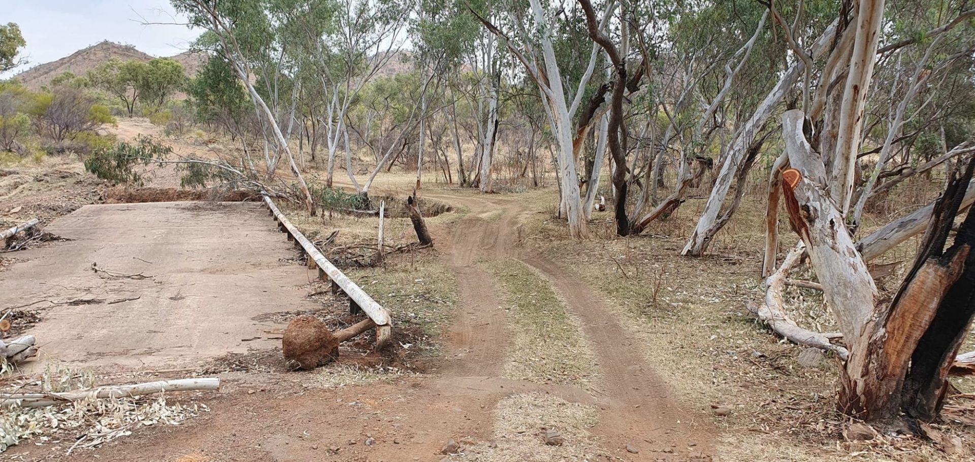 Graham posted: Never rely on Google to lead you into the unknown. At the Mary Kathleen mine camp site it took us on a short cut back to the main highway as seen in the photos. Result: one bent step and two damaged rear struts.