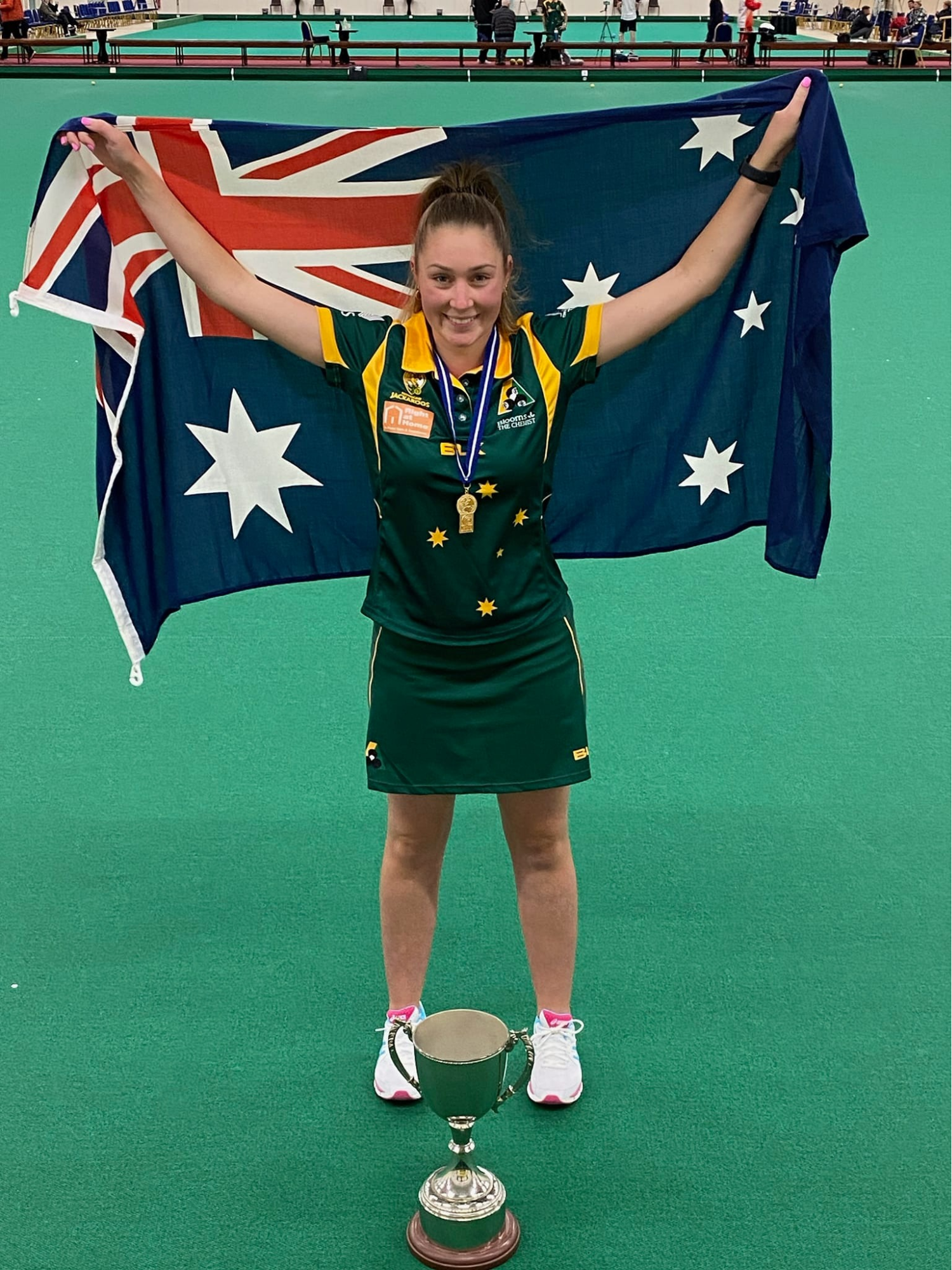 Brianna Smith wins Gold after defeating Hong Kong China in the final of the Under 25 World Cup in a gripping tie breaker! Brianna won the first set, but narrowly lost the 2nd set, setting the match up for a do or die tie break end. The tie break came down to a umpires measure, but Brianna’s bowl was best giving her the title of world under 25 champion! We are all so proud of you Brianna. Enjoy your celebration & we can’t wait to see you here to celebrate with you! St John’s Park Bowls.