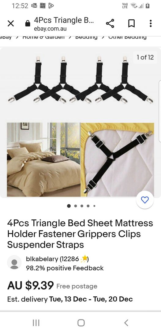 Sandra posted: For anyone who has a hubby that manages to untuck the fitted sheet, mattress protector and topper from the corner these straps have been a godsend. Perhaps it is just me though?