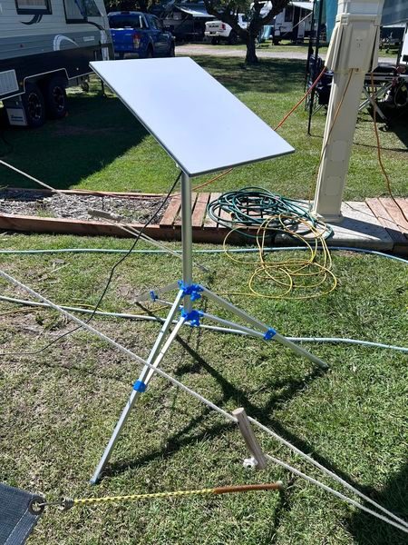 Vivienne set up her Starlink Gen3 V4 and adapted a portable clothesline to mount the dish!