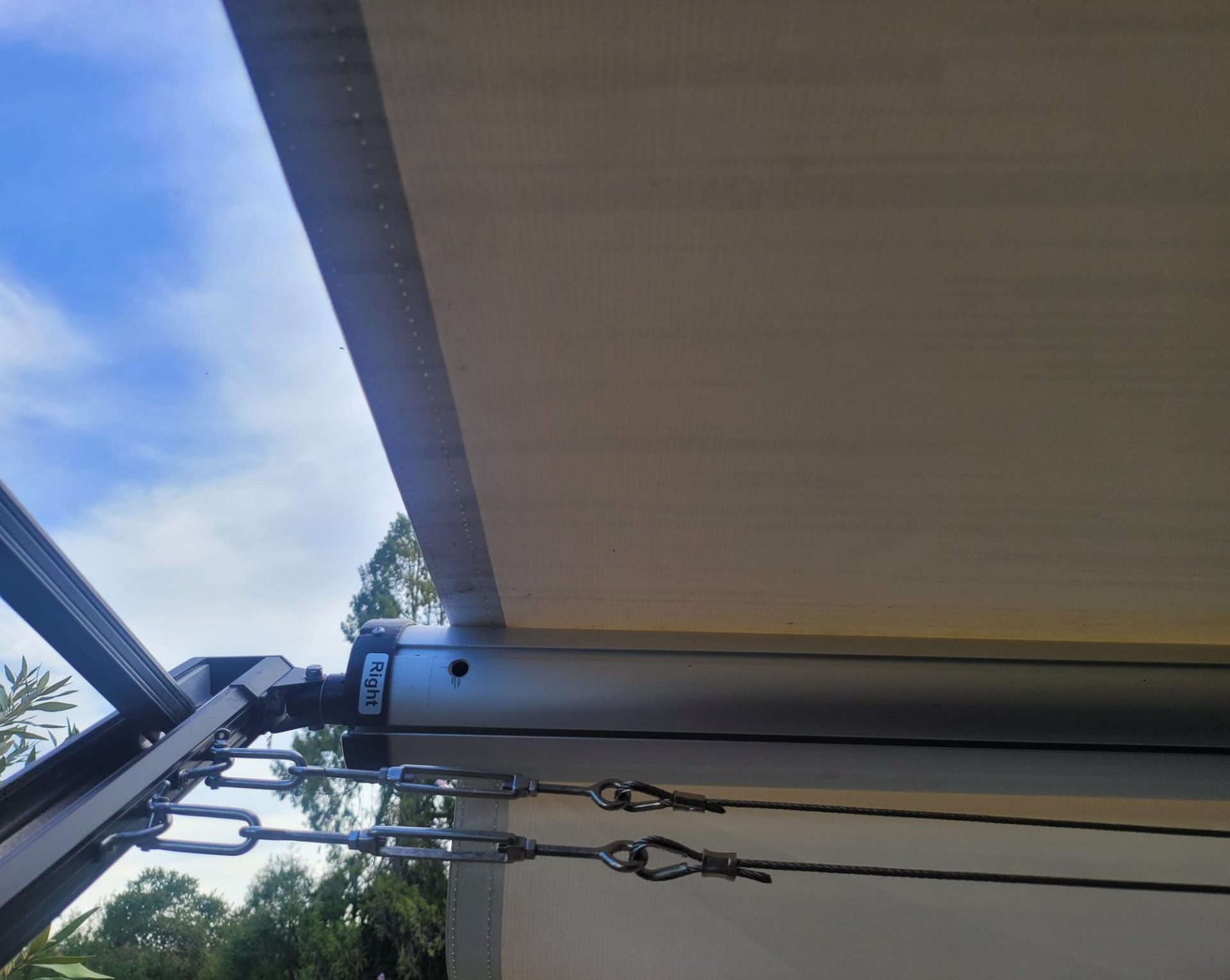 Darren posted: If your awning ‘ratchet lever’ is a bit tricky to use? Try this, and put a bend at the end. And lever it against the frame to raise the lever. No force or effort. Doesn’t interfere with looping the pull cord