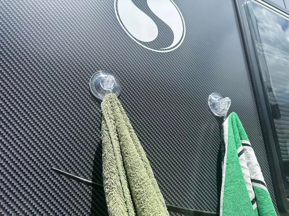 Robyn posted: Placed these suction hooks on the outside of the van to hang beach towels/swimwear. Easy to remove for travelling. Also placed felt pads on the blind to stop it banging.