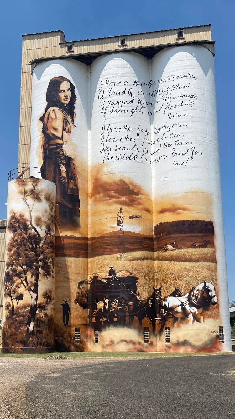 Annette posted: In memory of Dorothea Mackellar in Gunnedah NSW beautiful Silo Art here with 2 silos painted .