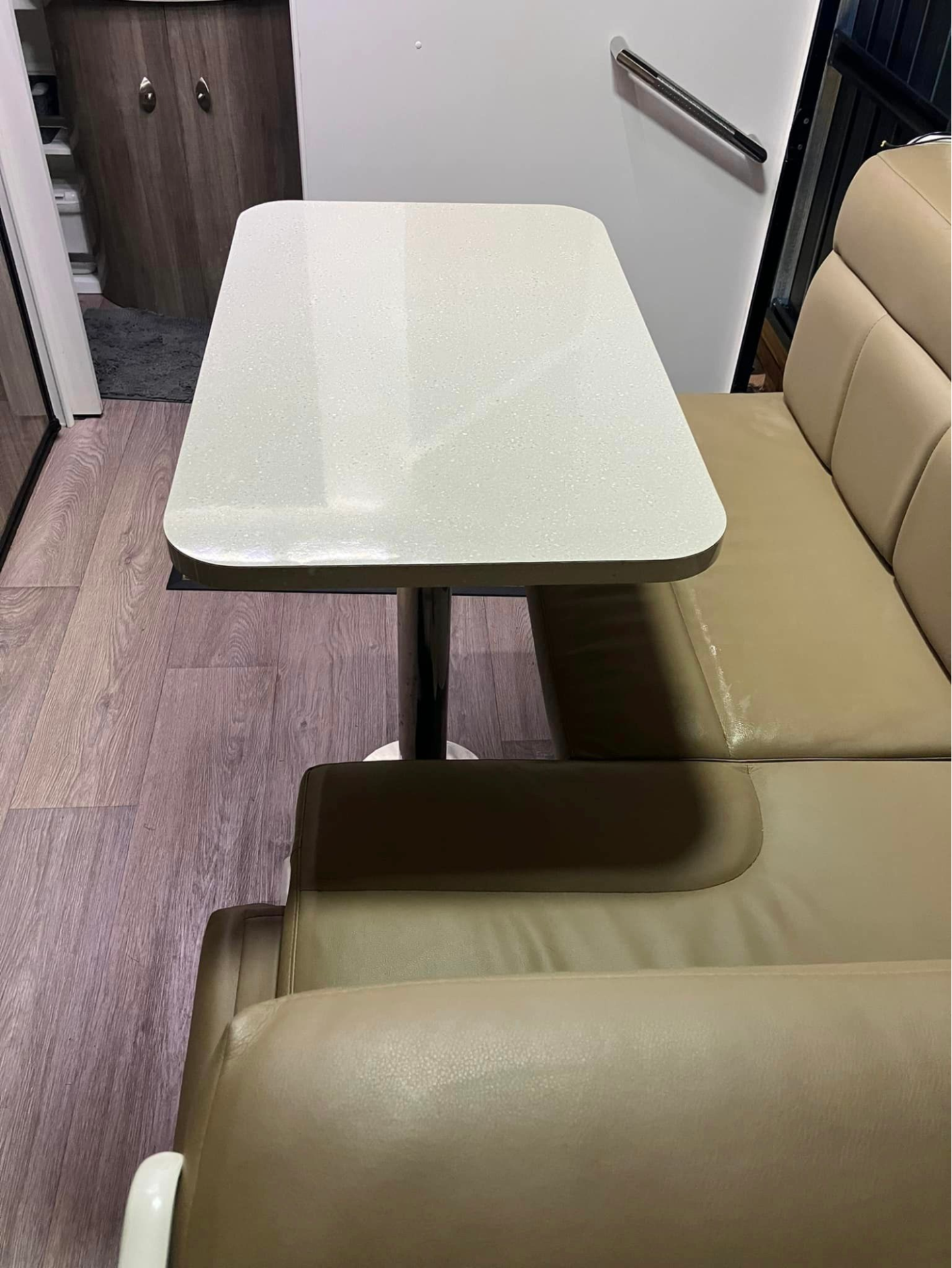 Luke posted: L shaped lounge table. Always found the lounge in our Terra Sportz hard to get in and out of and not much space when you sat down. Looked at the Nuova Mapa table but didn’t need all those functions. Found a linear rail kit on eBay for $40. Easy to fit. Added end stops and a locking thumb wheel. Happy with the result
