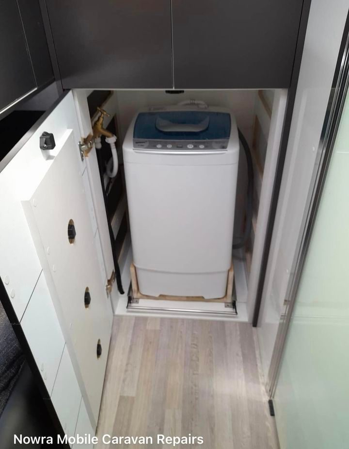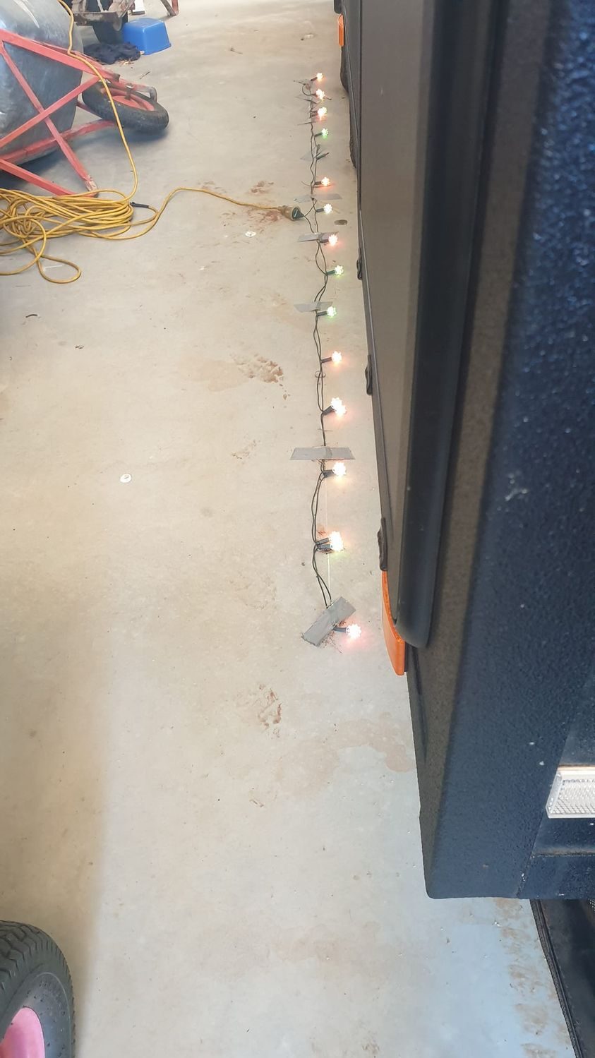 Doug posted:  Hi to all the Sunland owners that went to Maryborough, we had a great time looking at other peoples mods and attending various events. We are now looking forward to next years gathering. We finally made it back to Young NSW today, washed the van and put it away. Just thought I’d remind you how I use a string of Xmas tree lights, taped to the floor, so I have a guideline to aim for when I back into the shed, works just as well in the daytime.
