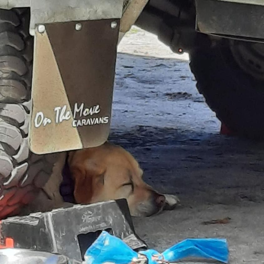 Jeanette posted: Annie the lab at Cosy Corner Tasmania’s beautiful east coast. Definitely not on the move, but loves caravanning in our Traxx