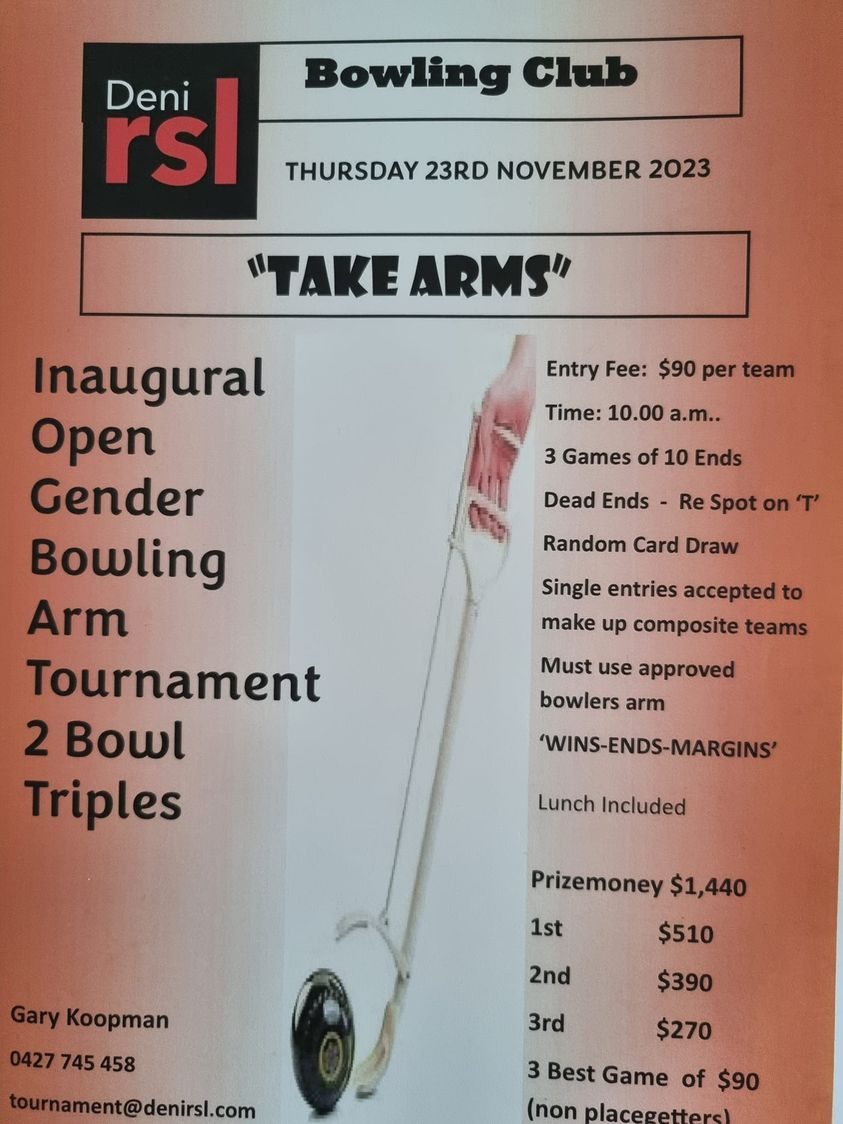 Contact Gary or email tournament@denirsl.com to enter. Limited to 24 entries.