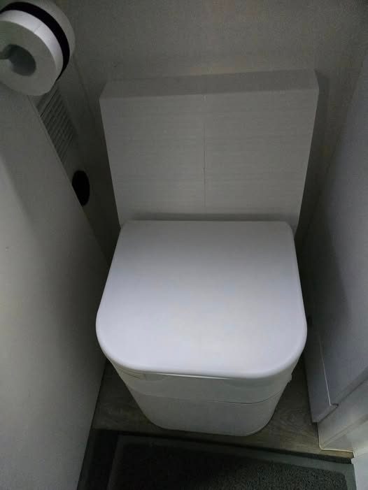 David changed to an OGO composting toilet 12 months ago. He loved the OGO but not the door and wall with the exhaust pipe. So, he got busy on the new 3D printer and made this cover up to hide everything, very happy with the result. “It’s fixed my OCD.”