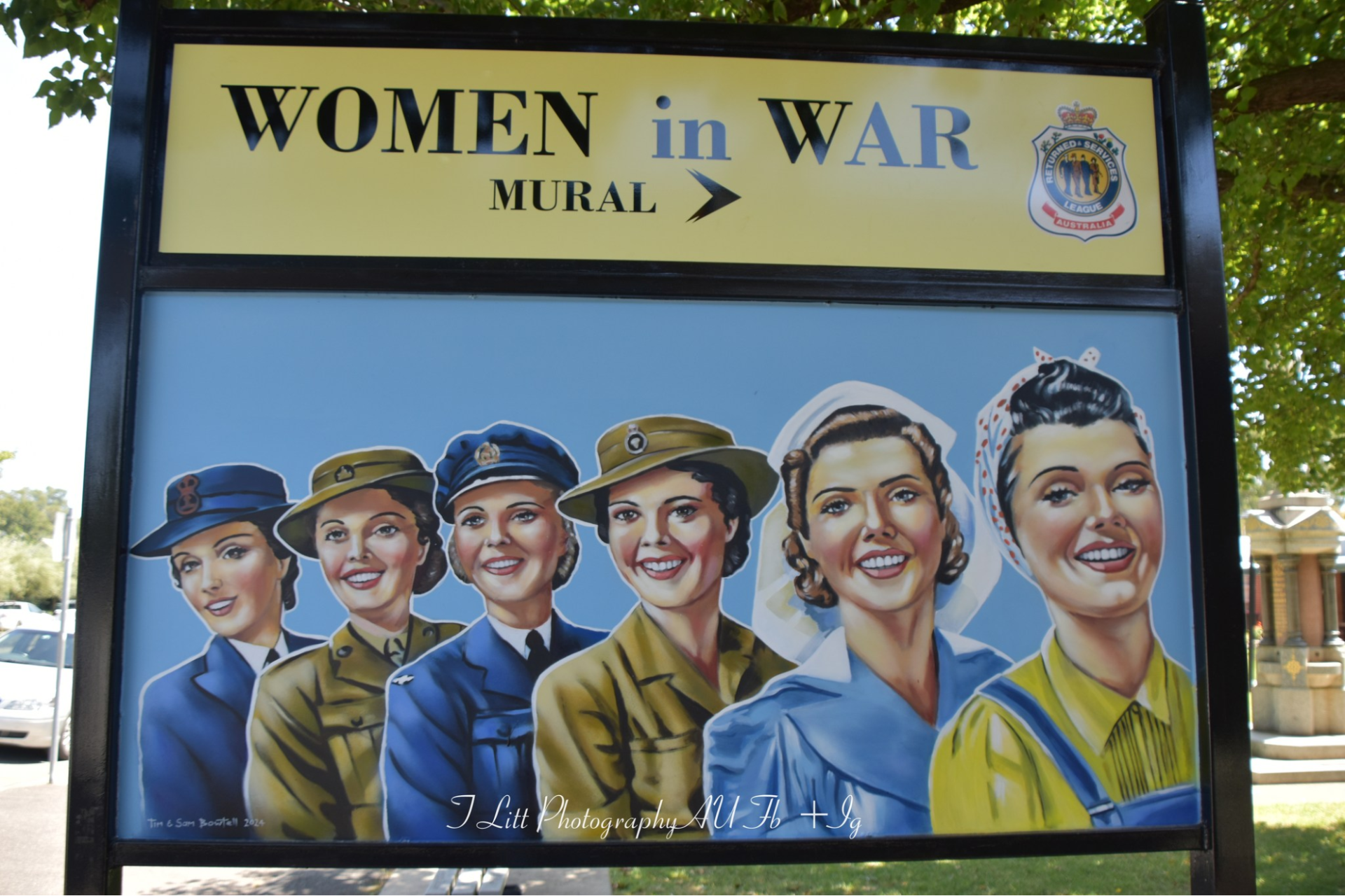 Part of the Women in War mural. By artists Tim and Sam Bowtell in Violet Town, Vic.