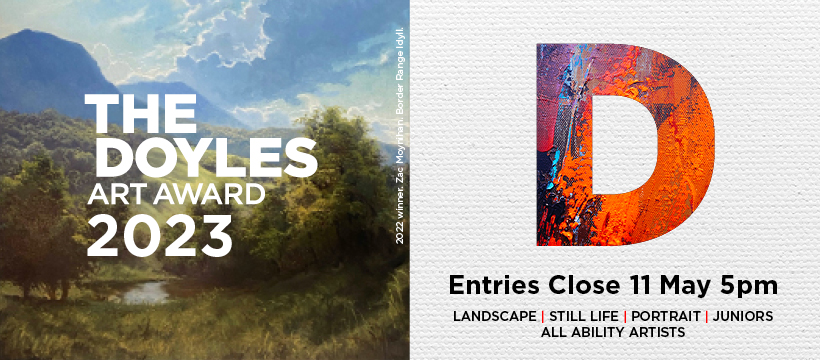 Artist submissions for The Doyles Art Award close 11th May for the three adult categories: Landscape, Figurative and Still Life; and three junior categories (under 18 years): Junior, Middle and Senior.