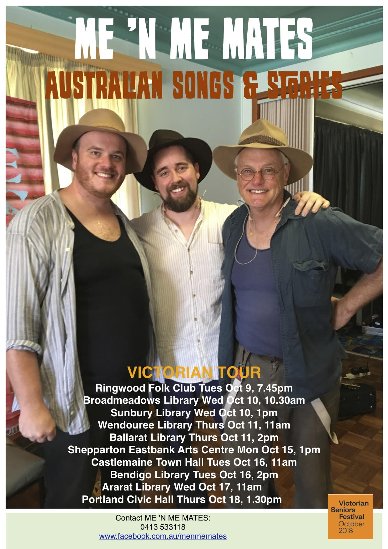 TOUR DATES: Tues Oct 9, Victorian Folk Music Club, Ringwood East Wed Oct 10 Broadmeadows Library