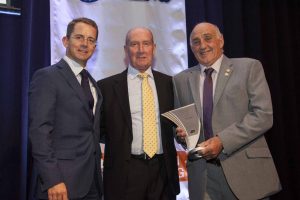Ron Cregan, pictured with Grant Wilckens and Jim Hayman, was revealed as the recipient for 2017. Ron set up his first business building aluminium caravan annexes in the 1980s and has been involved in the industry ever since. In 1999 he and his wife Gloria successfully tendered to build cabins/houses for the 2000 Olympics and later, in 2000, they purchased the Nelligen campground. After renovations it was transformed into the family friendly BIG4 Nelligen Holiday Park and went on to win numerous awards.