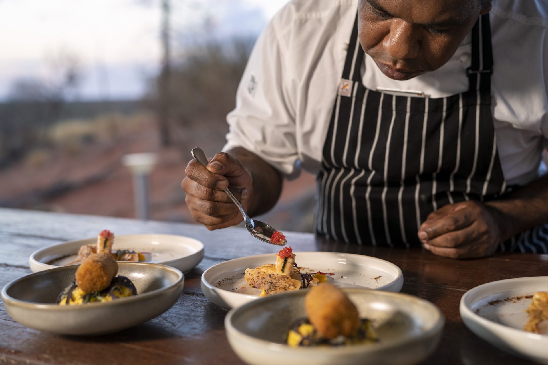 Uluru’s signature open-air fine dining experience Tali Wiru continues to set the benchmark for luxury tourism dining in Australia. It holds a coveted Chef’s Hat from the Australian Good Food Guide, making it the highest-rated restaurant in the Northern Territory and the only open-air restaurant in Australia to receive a Chef’s Hat.
