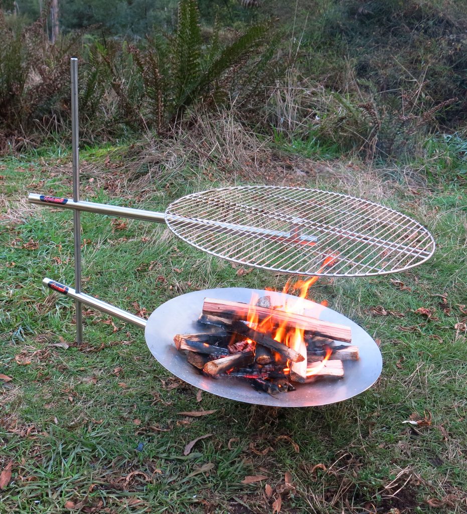 The Rota BBQ is fabricated from tough food grade 304 stainless steel and is ideal for camp fire cooking to picnics in the park. It is also able to be assembled over above ground fire pits as found in some caravan parks or government campsites. After the cooking is done, the three elements of the Rota BBQ are slim in design and easily stow away to virtually take up no space at all.
