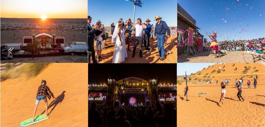 Off stage, opening day highlights include a sunrise yoga session, wacky dunny door painting, sand dune surfing, dune volleyball and the REDARC Outback Air Guitar Championships.