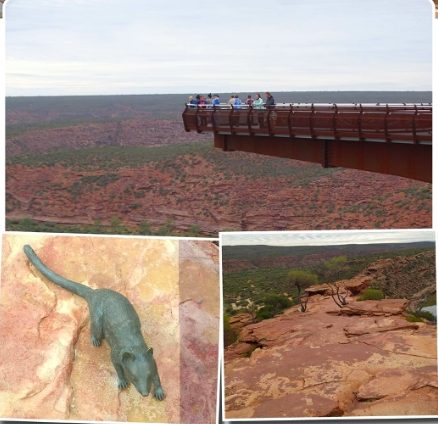 They are just amazing. The style is a delight, good clean lines, a feeling of space all around. You know they are solid and made with heaps of steel, but they don’t feel like it. They feel open and almost as if you are hanging in clear air. The view of the Gorge and the park itself is breathtaking. We stood there for so long, it began to feel like home! One of the added things are the animals. When you walk to the Skywalks you see an animal here, and another one of there. They’re not real, but they look like they should be.