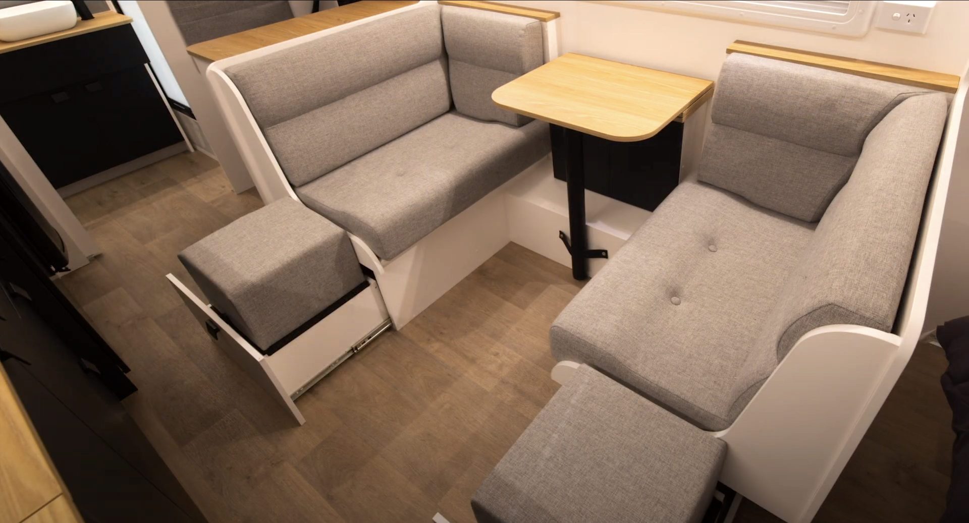 Off-gridding capabilities include a 110L freshwater tank, 110L in grey water storage, a 200W solar panel, 100Ah battery storage controlled with the BMPRO BatteryPlus35-II-HA and Trek3 + display that wirelessly connects to your phone via the Odyssey Link connection.
